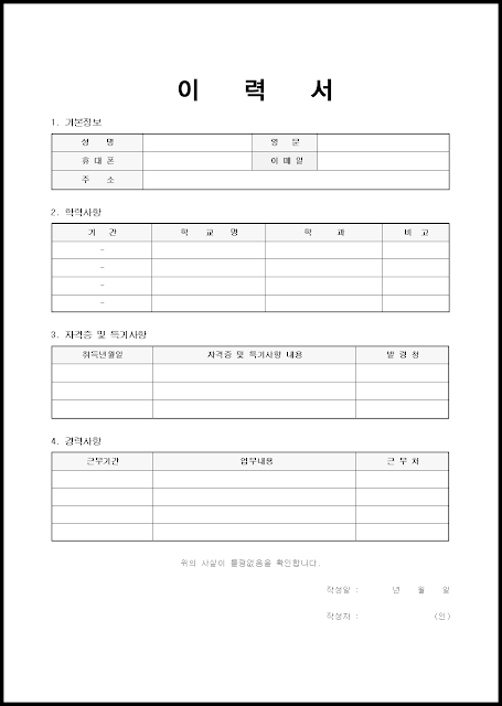 ◦ 문구점 이력서